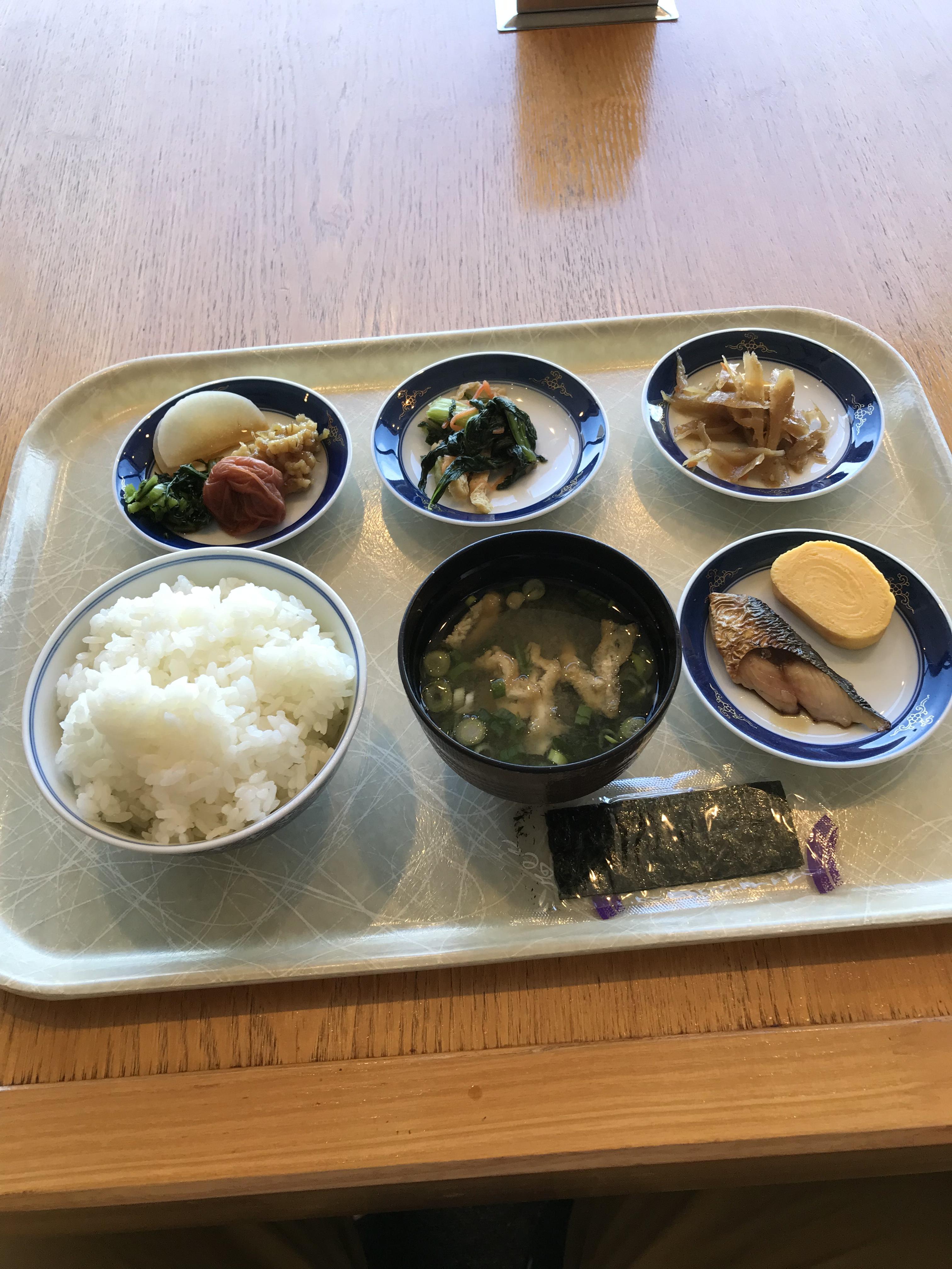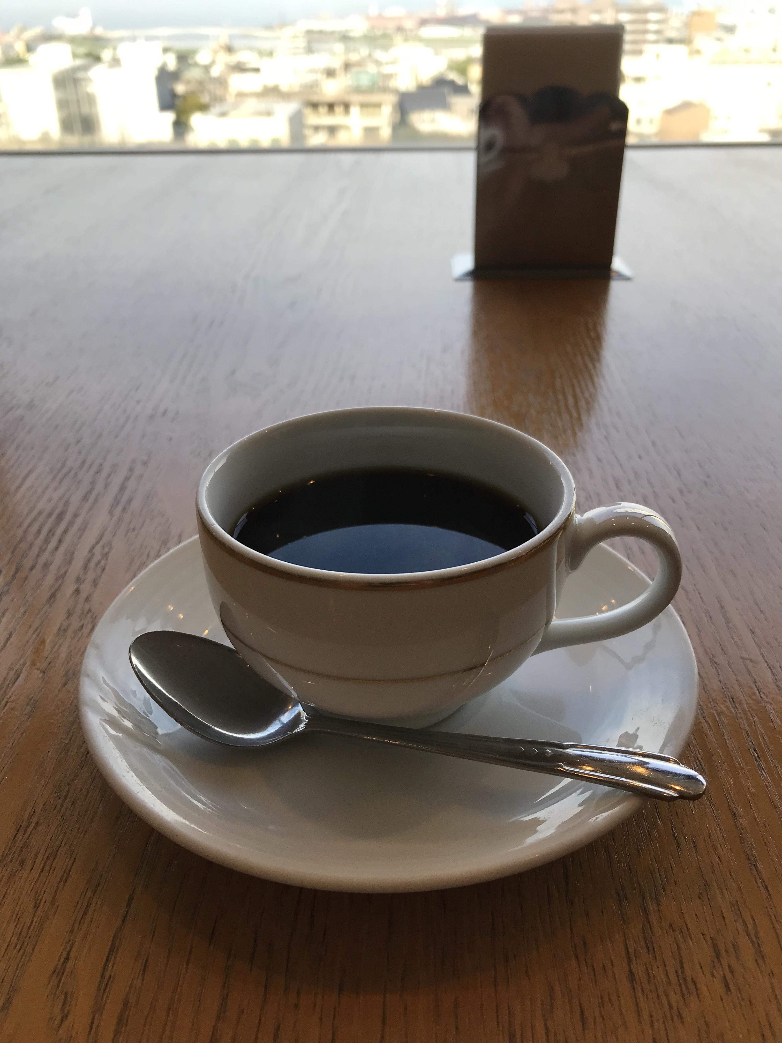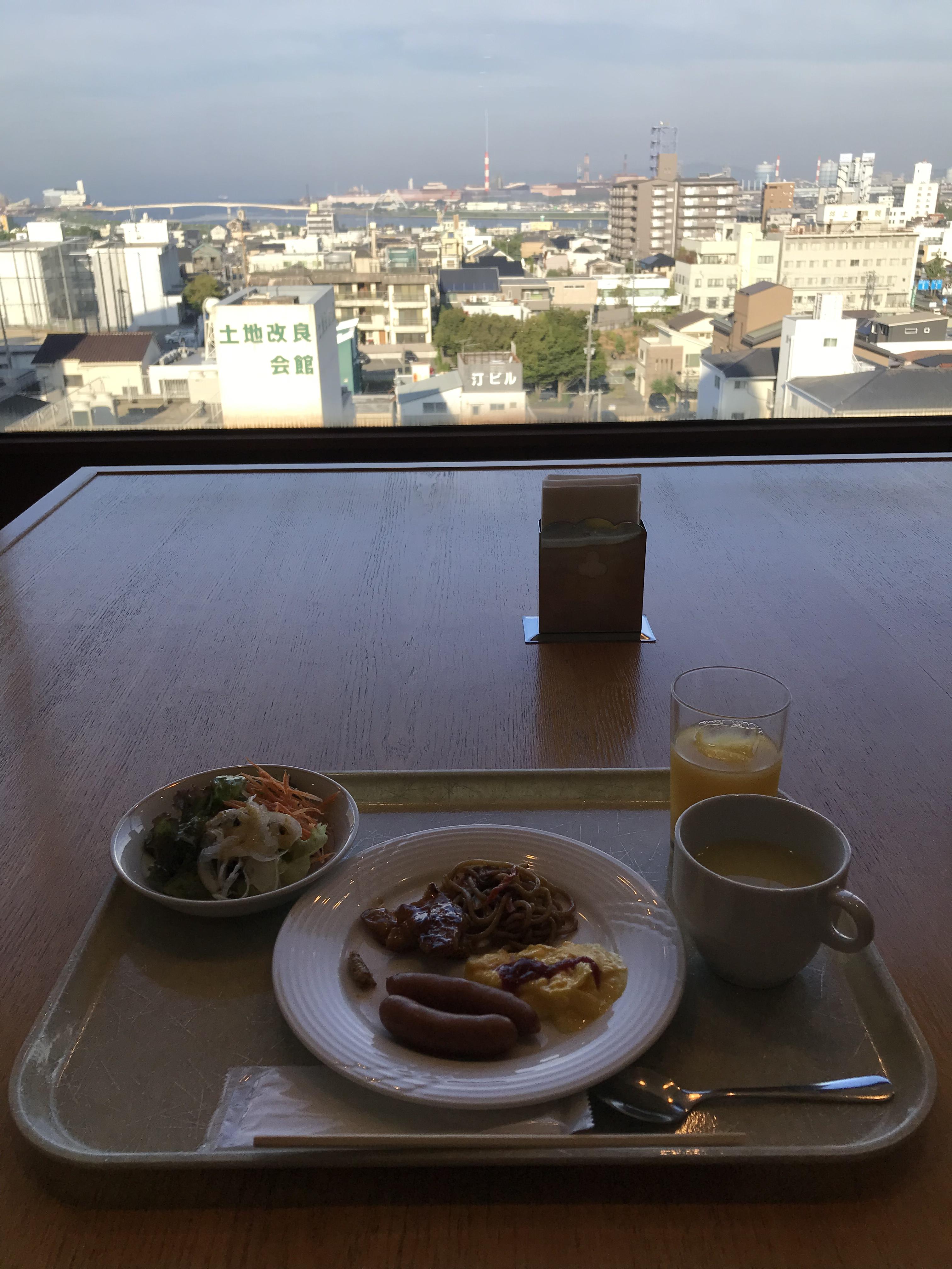 和歌山城の近くにあるスマイルホテル和歌山さん。9階のレストランで和歌山城を見ながら朝食がいただけます。 でも僕たちはお部屋からお城がずっと見えてたんで、反対側の海が見えるお席で食べることに。 焼き魚やお味噌汁、梅干し、金山寺みそ、紀の川漬けなど和歌山名産で朝からご飯がすすむすすむ。茶がゆなんかもあってうれしい。 あと、すりおろしドレッシングが美味しくてサラダもいっぱい食べちゃう。 ふ〜満腹。 そして食後のコーヒーでほっとひといき。