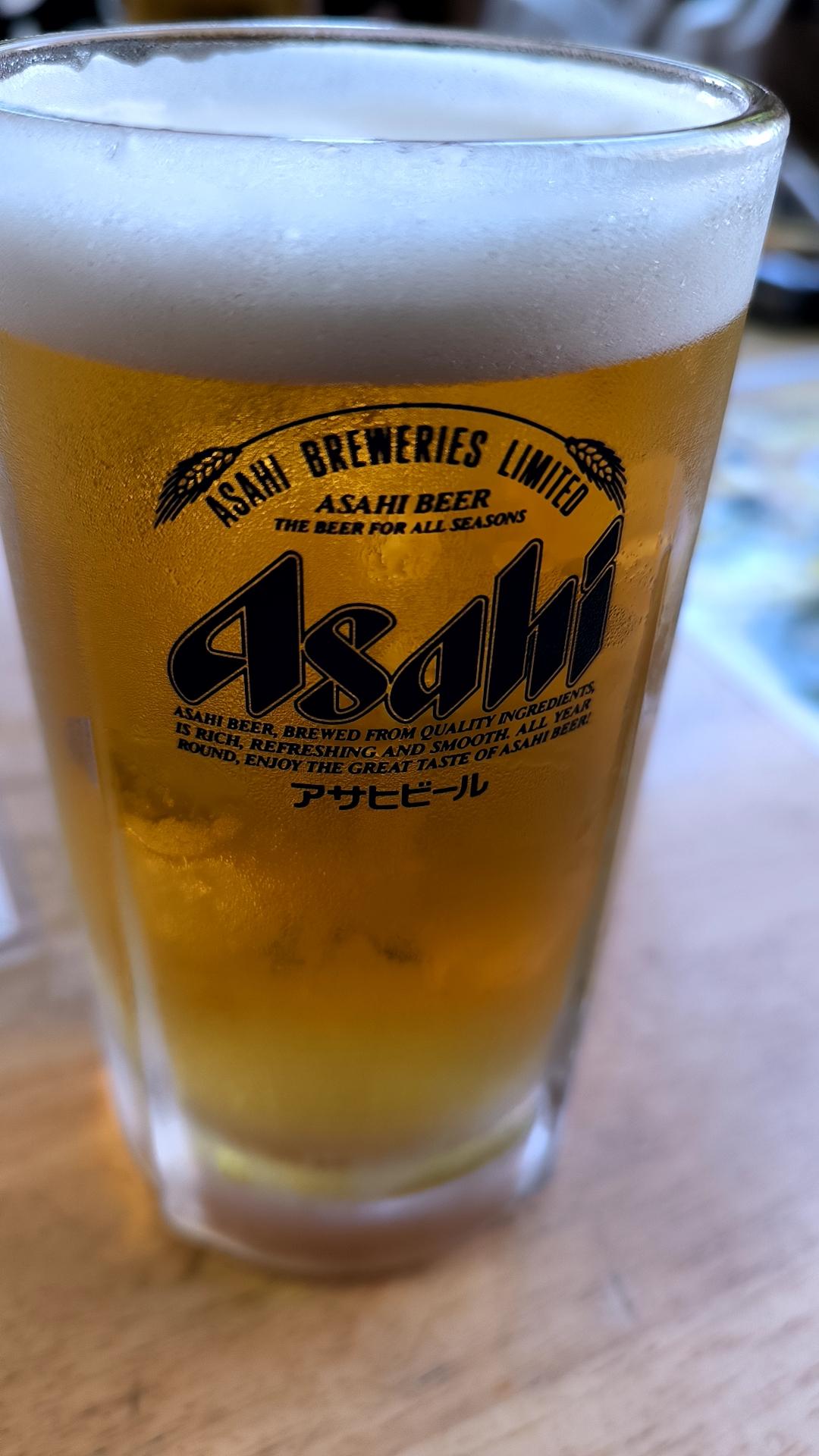 到着!まずはお昼から乾杯。おく貝の焼いたのとネギトロ丼が絶品でした。美味しかった~